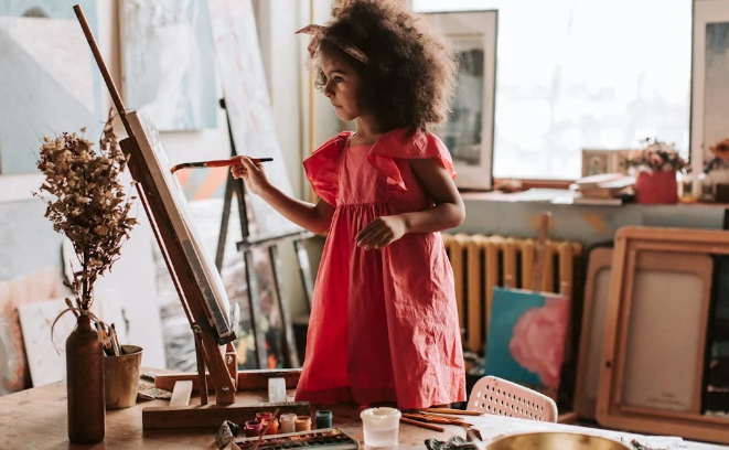 아이들은 미술을 통해 자기표현과 창의적 사고를 키울 수 있습니다.