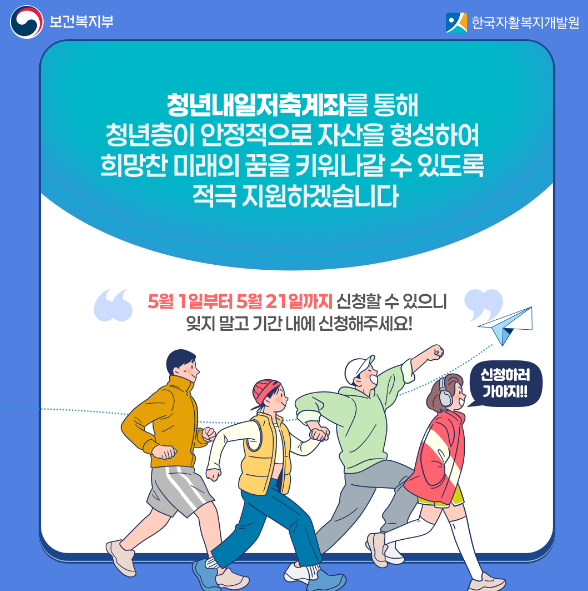 청년의 든든한 출발을 위한 청년내일저축계좌 관련 안내사항 참고하여 국가지원을 받으시기 바랍니다.